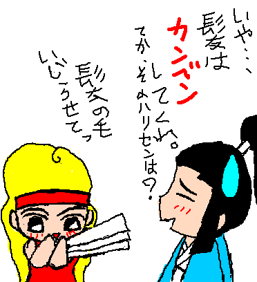 これ、ログ一枚目の自分絵で(右側にはがやんの描いた絵があります)、